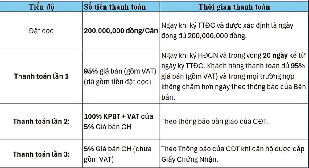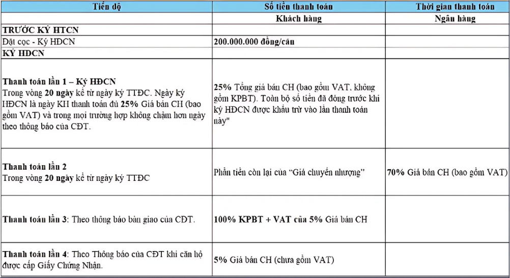Đối tượng áp dụng: KH mua căn hộ 03 Phòng ngủ và ký Hợp đồng mua bán căn hộ theo Thỏa thuận đặt cọc đã ký.