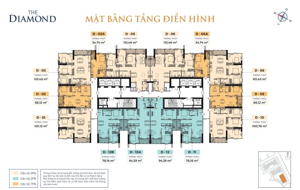 - Tòa The Diamond: 394 căn hộ