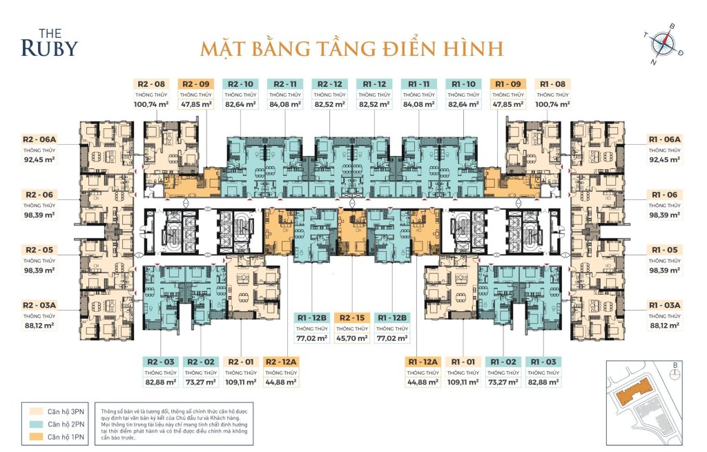 - Tòa The Ruby: 829 căn hộ